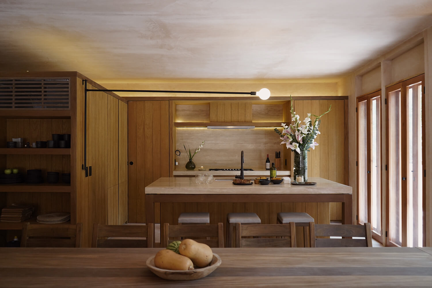 Offering a warm and inviting arrival experience, each residence and villa features open-plan interiors with ample space for gathering and entertaining. Open chef’s kitchens lead to abundantly lit living spaces, where glass window walls draw the outdoors in. Bedroom suites offer privacy and vibrant views of the surrounding leafy jungle, each with direct access to a serene balcony.